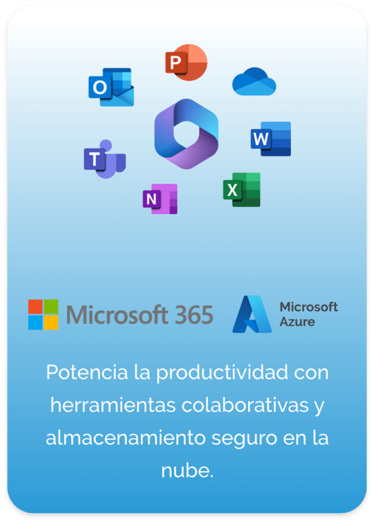 Potencia la productividad con herramientas colaborativas y almacenamiento seguro en la nube.